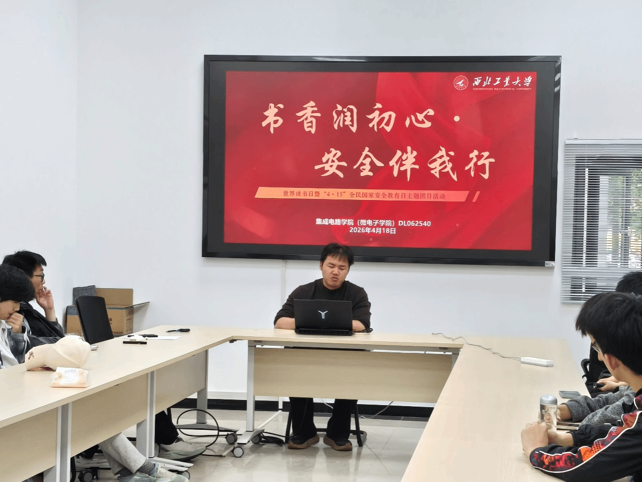 2026年4月23日是世界读书日,4月15日为全民国家安全教育日。为厚植青年爱国情怀、强化国家安全识,2026年4月18日,集成电路学院(微电子学院)DL062540团支部开展“书香润初心·安全伴我行”世界读书日暨全民国家安全教育日主题团日活动,引领支部青年以书香铸魂、以安全护航,勇担时代使命。