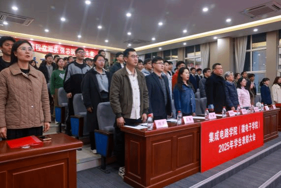 春启新程,扬帆起航。为表彰先进、激励成长,树立榜样、引领前行,3月9日晚,集成电路学院(微电子学院)在马克思主义学院207报告厅召开“扬帆启程立潮头,强芯筑梦向未来”2025年学生表彰大会暨成长故事分享会。学院院长马炳和、党委书记杨妮花、教师代表、获奖学生代表以及学院学生参加本次大会。会议由团委书记丁嘉欣主持。