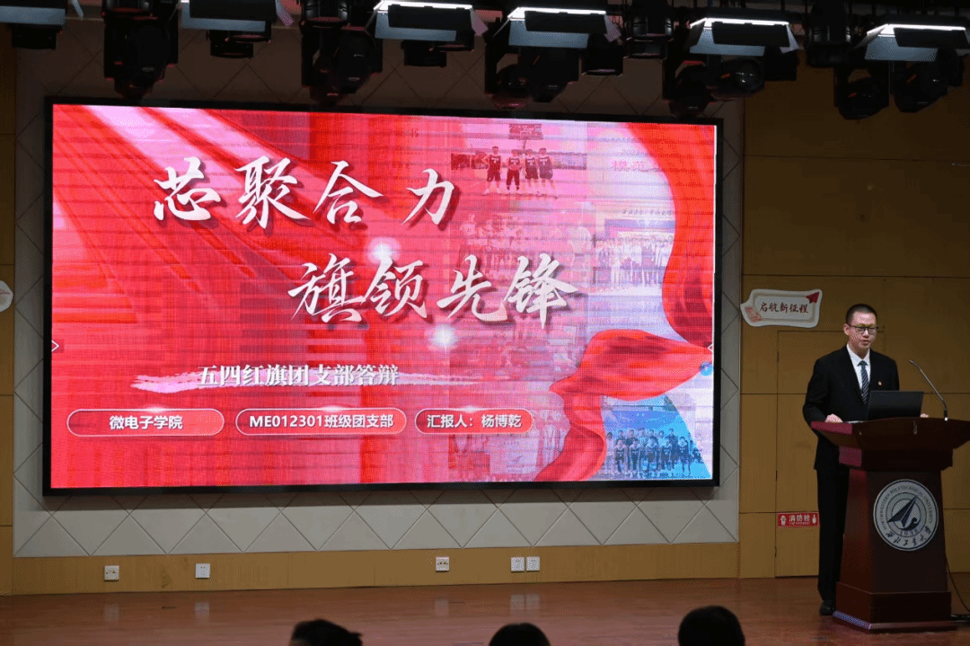 4月18日,西北工业大学共青团“五四”表彰评比活动在长安校区举行,来自各培养单位的共27个团支部、29名标兵候选人同台答辩。经过激烈角逐,微电子学院ME012301团支部、2021级本科生孙鹏程分别以第二名和第四名的优异成绩获评“五四红旗团支部”和“五四红旗标兵”称号,两项荣誉均为我院首次获得。