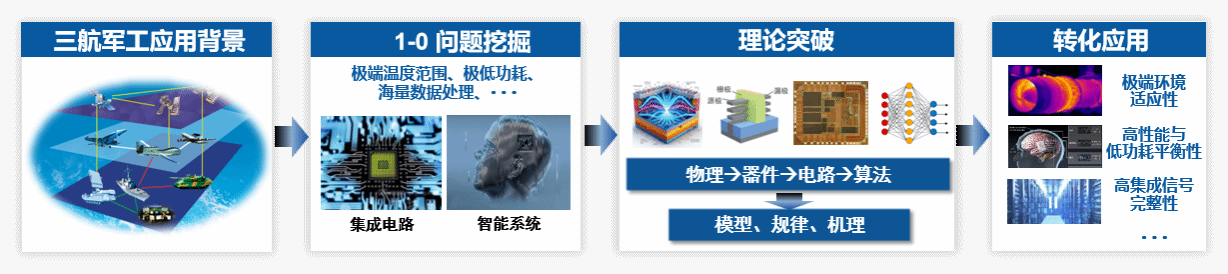 集成电路学院(微电子学院)紧密围绕“四个面向”,深入践行“0到1”“1到0”科研理念,精准对接航空航天航海等国家重大需求,聚焦集成电路核心关键问题和“卡脖子”技术瓶颈,自觉发挥基础研究主力军和重大科技突破策源地作用。学院兼顾“0到1”原创性自由探索与“1到0”回溯性基础研究,一方面鼓励科研人员开展“原创性”的底层技术创新,深耕基础原理与核心算法;另一方面立足西工大系统、整机、型号研究优势,从航宇装备应用场景中梳理关键科学问题,开展“有中寻根”反向攻关,实现“从工程中来、回工程中去”的科研闭环,在航宇专用集成电路设计、空天微纳机电系统、先进集成及可靠性等领域形成鲜明特色优势,推动“0到1”原创突破与“1到0”技术溯源双向发力,助力关键技术从跟跑、并跑向领跑跨越。学院主持承担国家科技重大专项、国家重点研发计划、武器装备重点型号、国防基础科研、国防预先研究、国家重大计划、国家自然科学基金重点项目等重要项目,深度参与了多型卫星、飞机等国家重大工程的研制任务,为国家集成电路产业自主可控、国防科技事业发展和国民经济建设做出重要贡献。